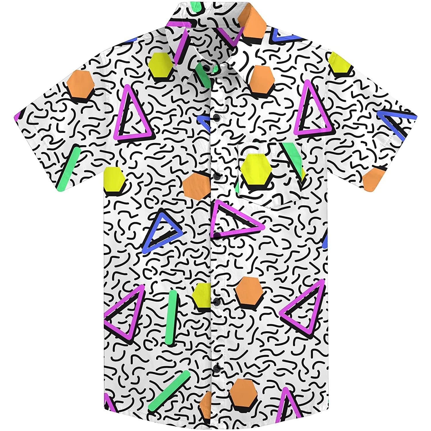 The Funky Retro 80s 90s Style theme designs Hawaiian button-up shirts. It is made with quick-dry material and gives you a comfortable feeling when you wear it on a hot summer day.