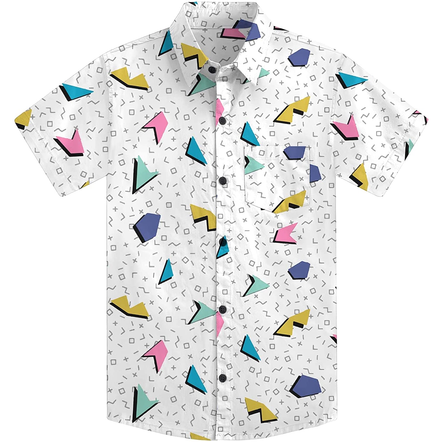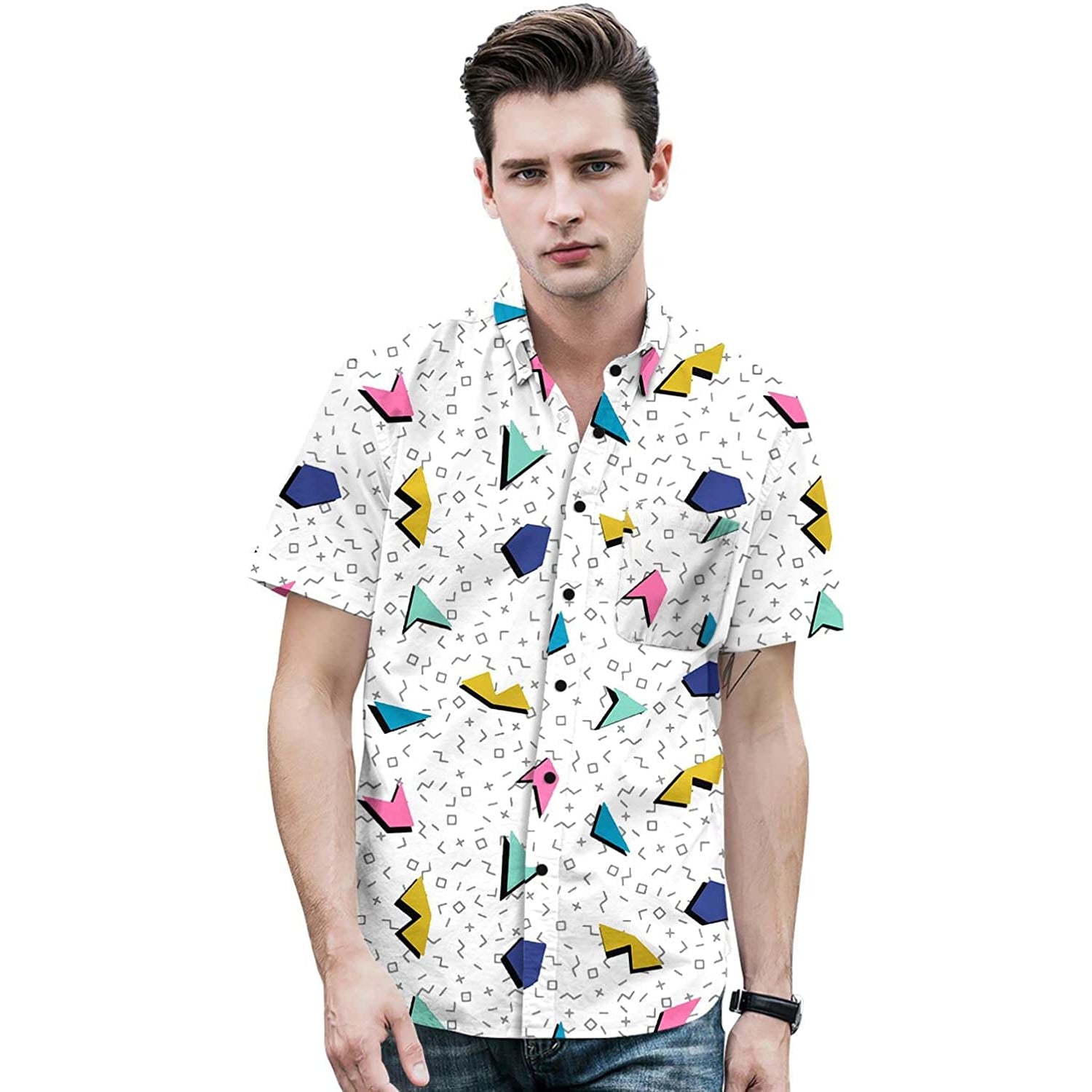 The Funky Retro 80s 90s Style theme designs Hawaiian button-up shirts. It is made with quick-dry material and gives you a comfortable feeling when you wear it on a hot summer day.