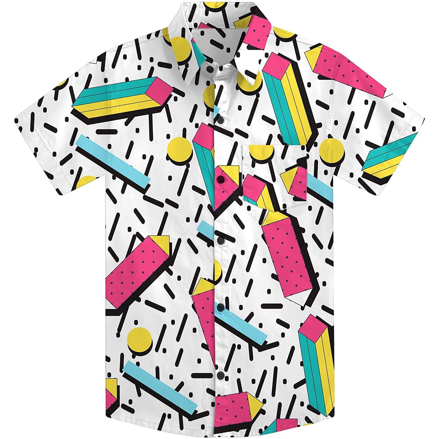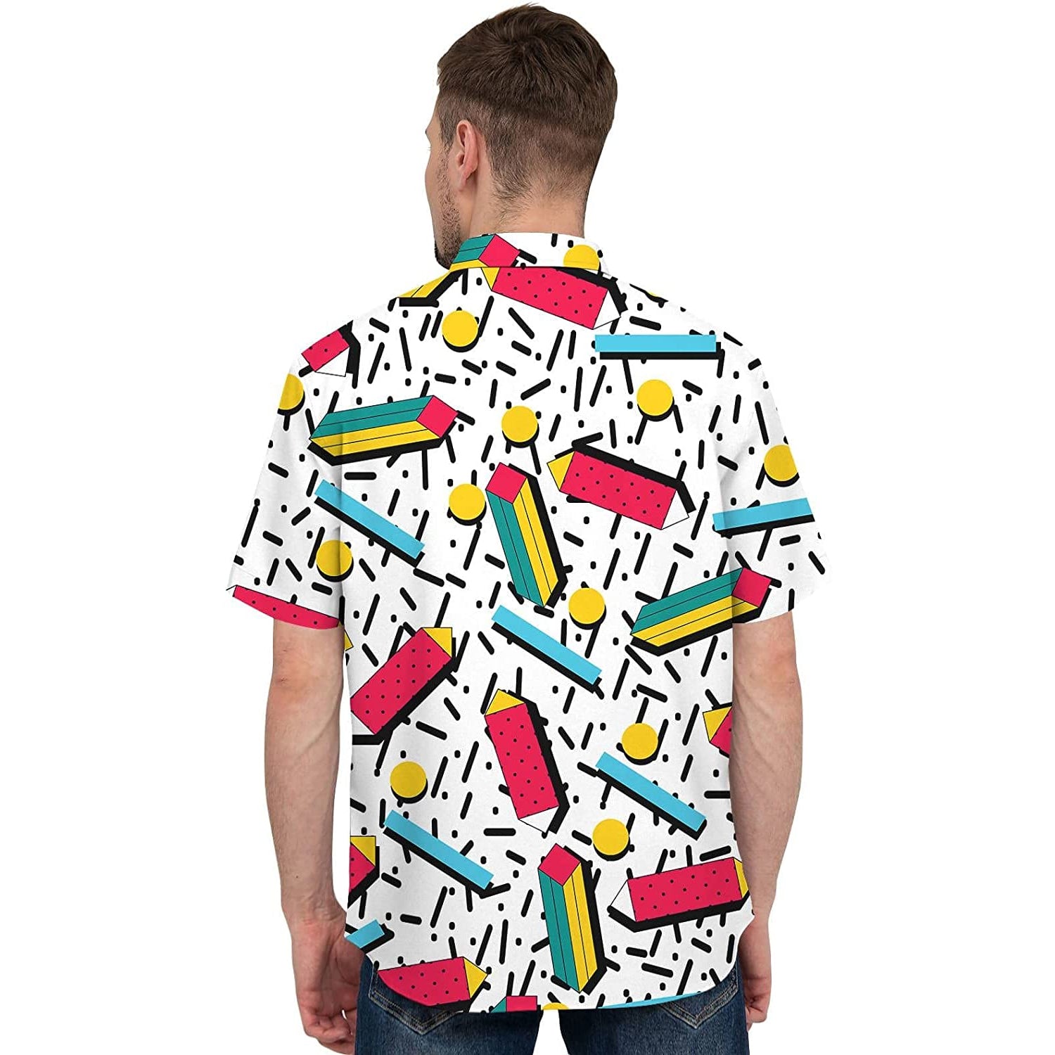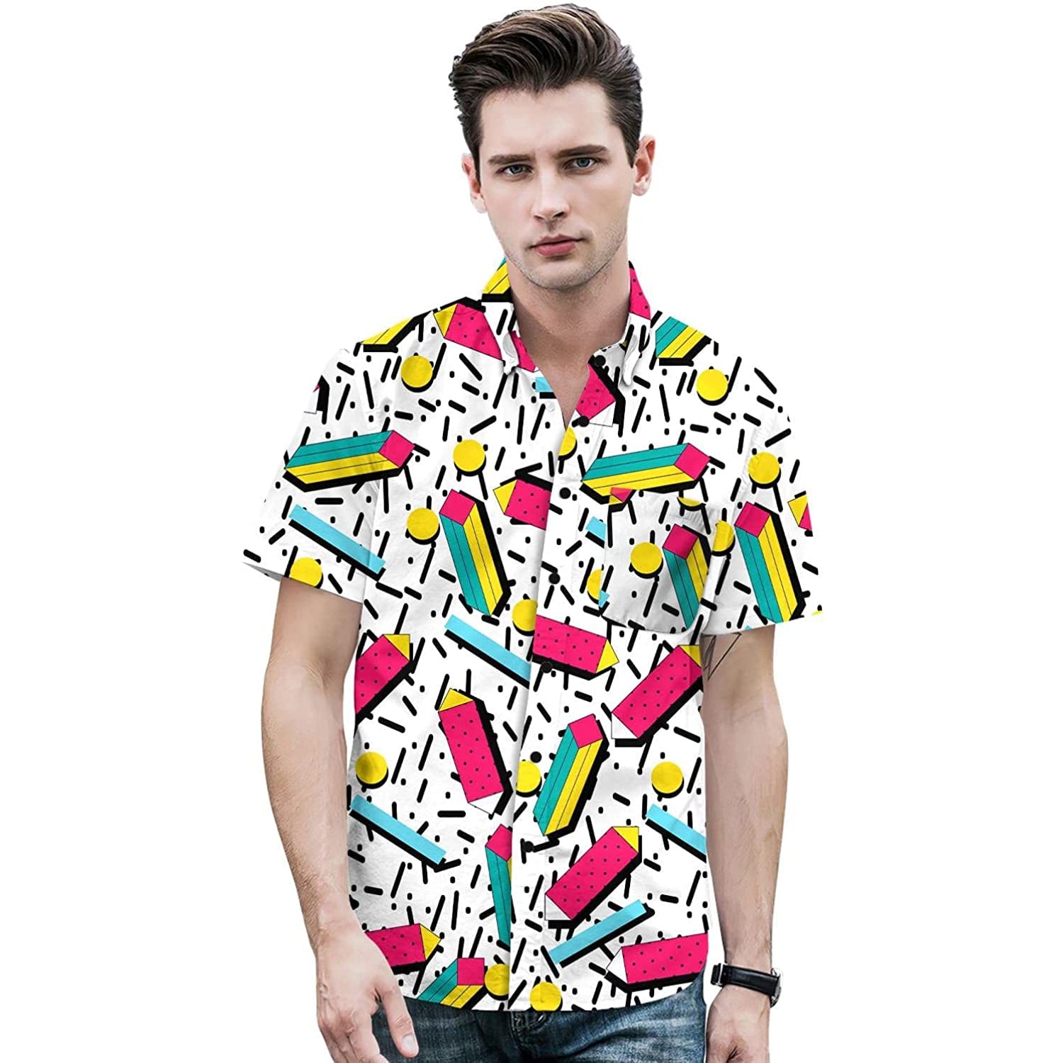 The Funky Retro 80s 90s Style theme designs Hawaiian button-up shirts. It is made with quick-dry material and gives you a comfortable feeling when you wear it on a hot summer day.